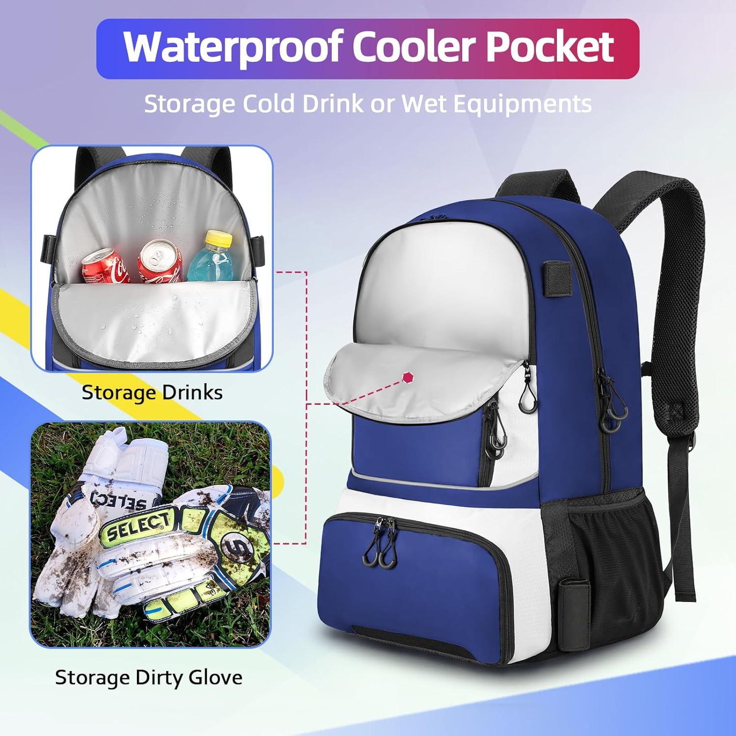 Structural Features: Lacrosse backpack includes an insulated waterproof compartment and a ventilated cleats compartment. The insulated compartment keeps beverages fresh for hours or holds damp clothing and towels, ensuring the dryness of other compartment contents. The shoe compartment is designed for sneakers, equipped with ventilation holes to prevent odors. The interior utilizes polyester fiber material that can be pulled out for easy washing, simplifying maintenance