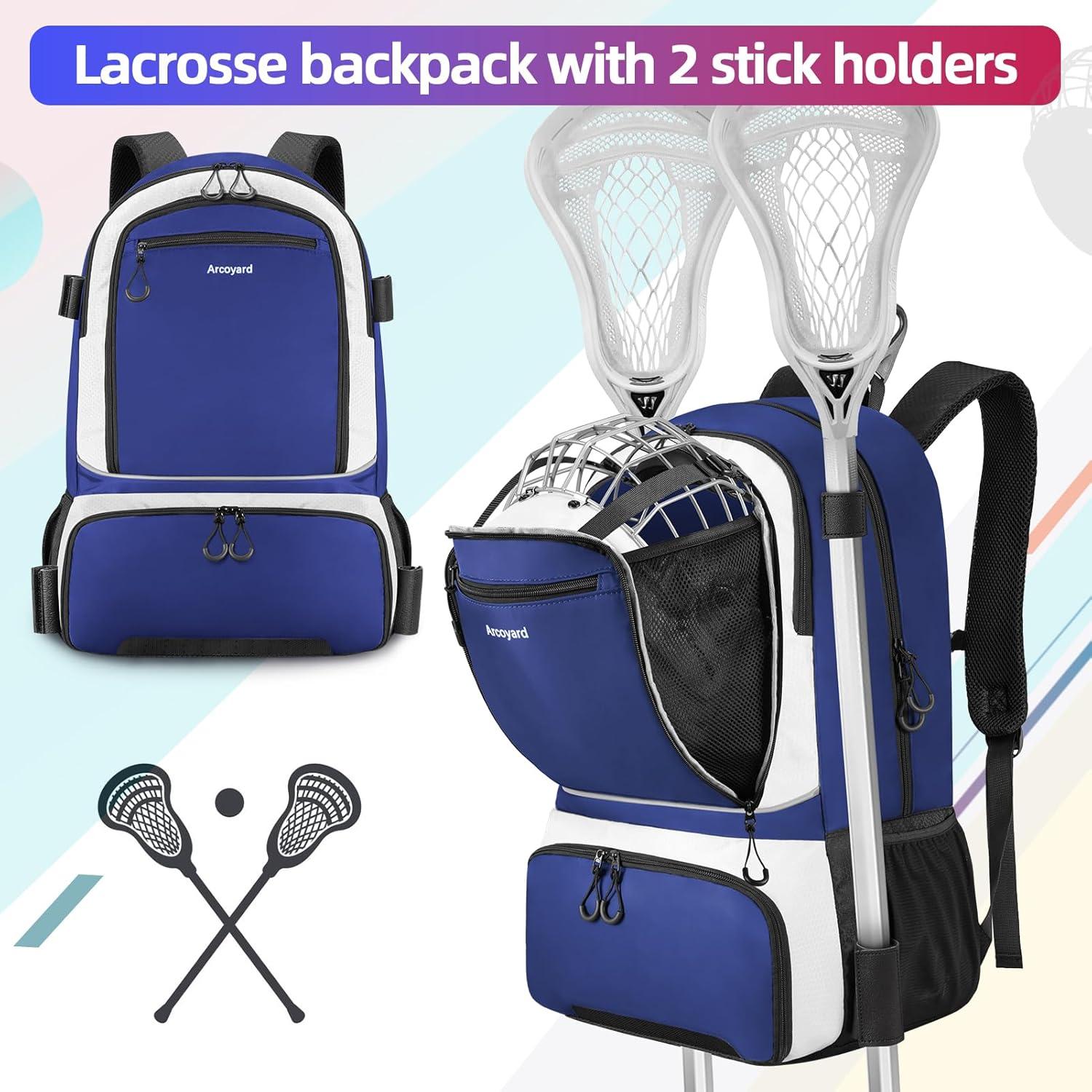 Extra Large Lacrosse Backpack with 2 Stick Holders, Professional Lacrosse Bag for Youth with Ventilated Cleats Compartment and Insulated Pocket, for All Field Hockey Gear(Blue)
