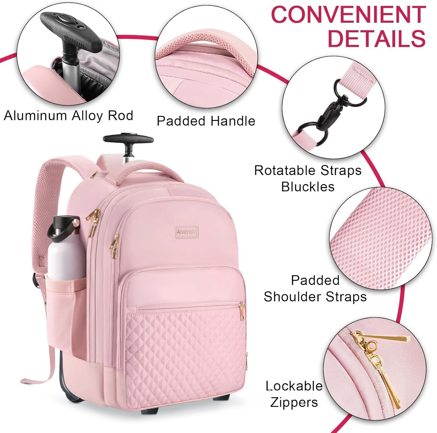 Multi-Purpose: Arcoyard rolling backpack for women is suitable for overnight stays, commuting, business trips. It can be a great gift for businessmen, family and friends, or a gift for her