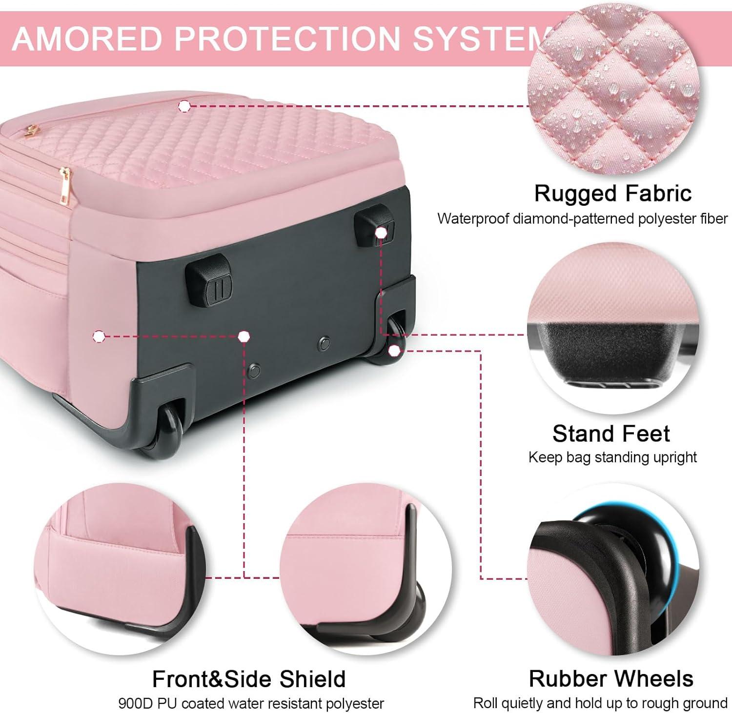 imageRolling Backpack Carry On Luggage For Adults With Wheels 40L Wheeled Backpack For Women Travel Roller Backpack Rolling Bag PinkPink