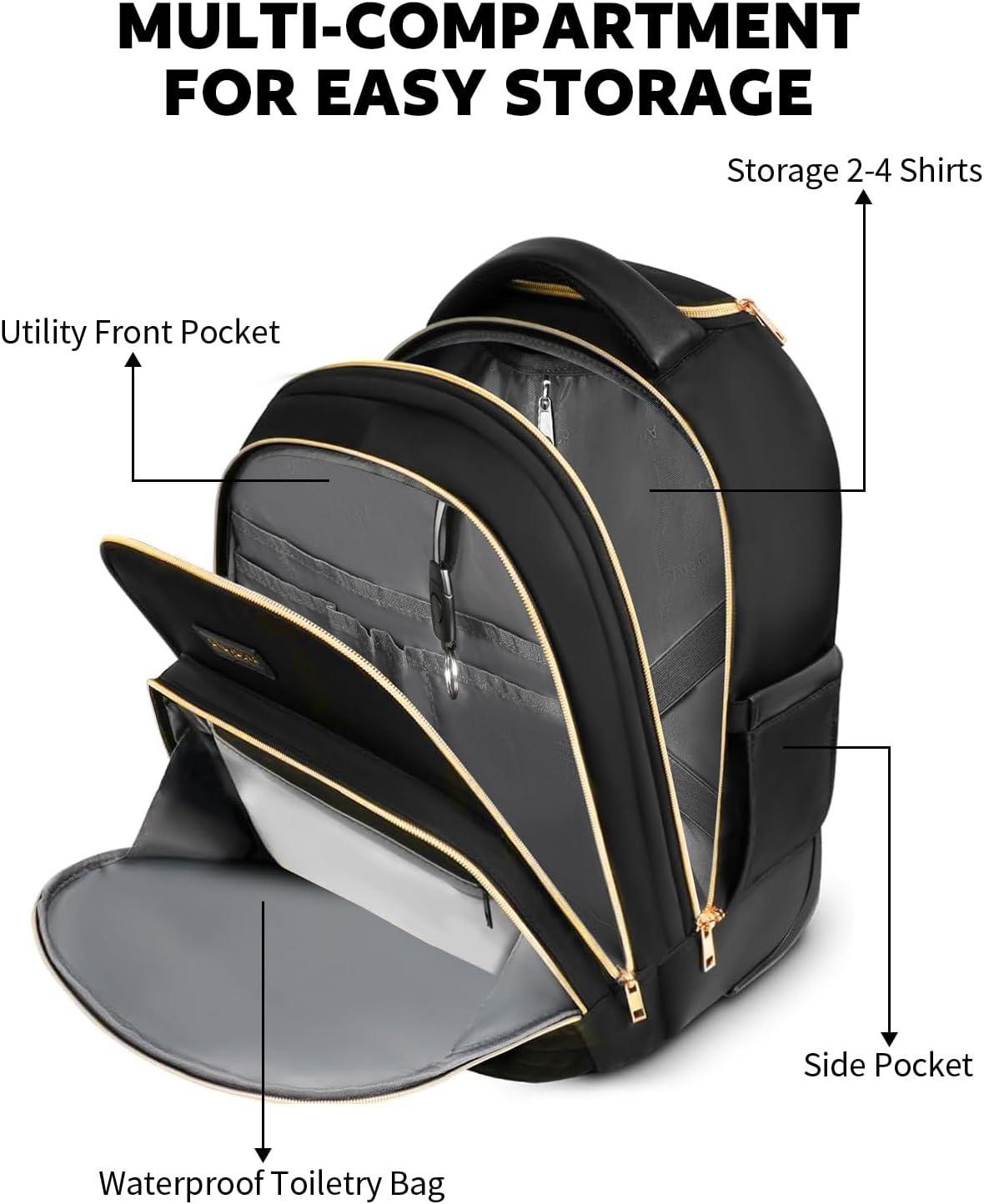 Organized Compartments: Separate pockets, elastic straps, and buckles keep clothing, documents, and devices in place for 1–2 day trips. The padded 14.3 inch laptop sleeve and extra compartments make it easy to pack, find, and protect all essentials for work, study, or weekend travel as an overnight bag.