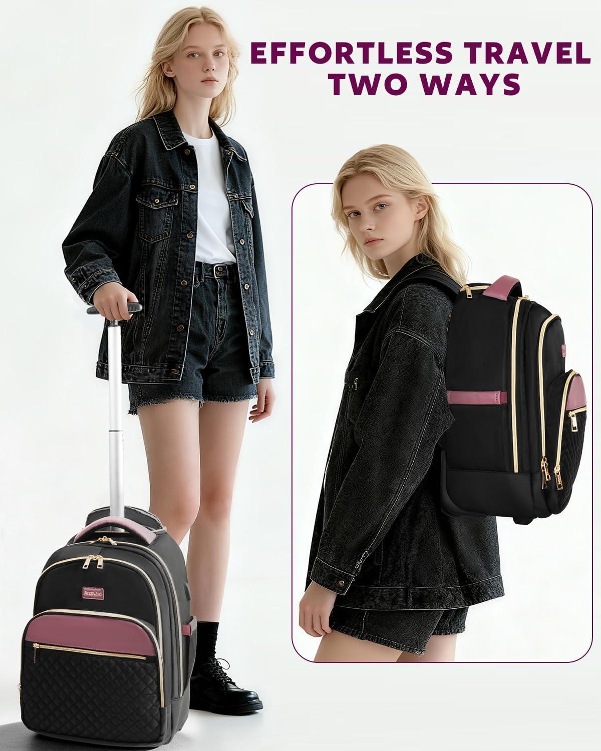 Multi Purpose Use: Perfect for commuting, short trips, campus life, or overnight stays. Rolling wheels and padded straps allow seamless transition between travel backpacks and roller bag, keeping essentials organized and easy to reach whenever needed.