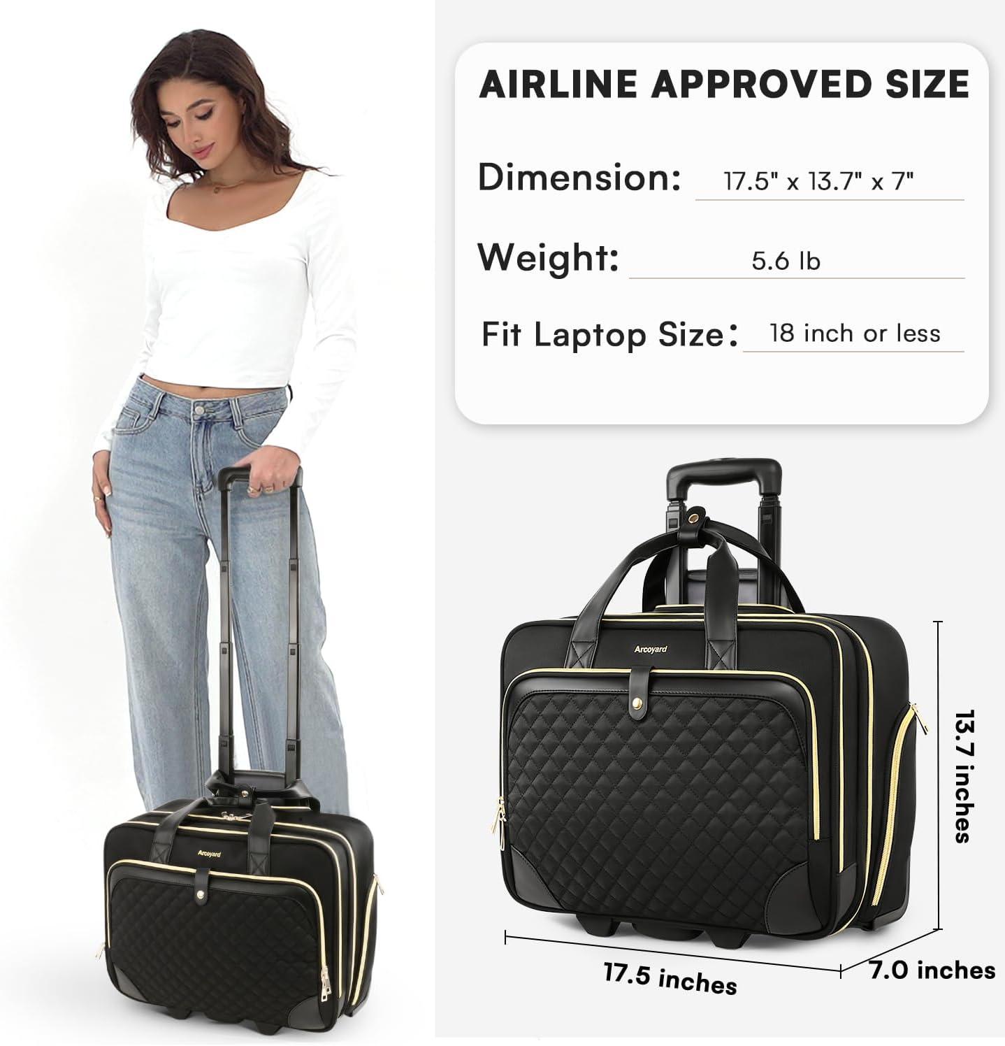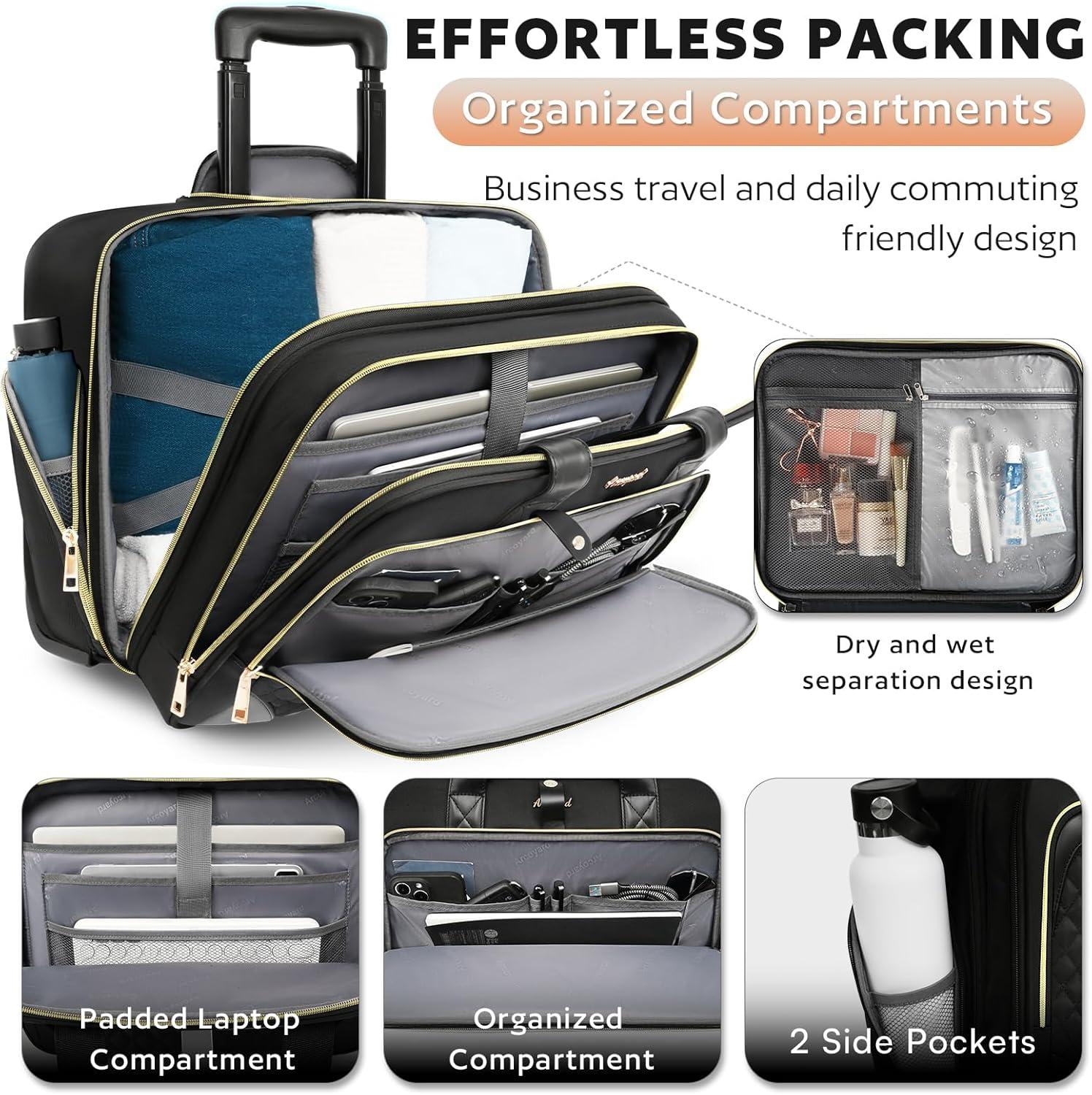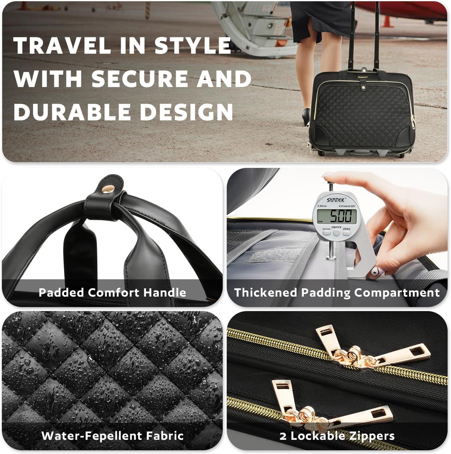 Lifetime After-sale Service: Worry-Free After-Sales Service. If you have any questions for our Arcoyard rolling laptop bag for women, please let us know!
