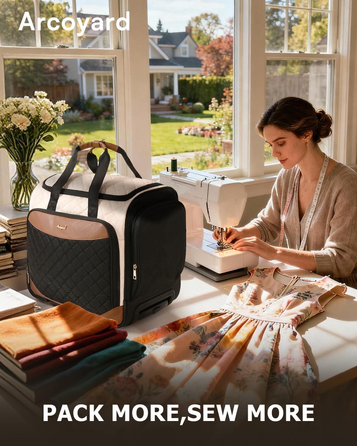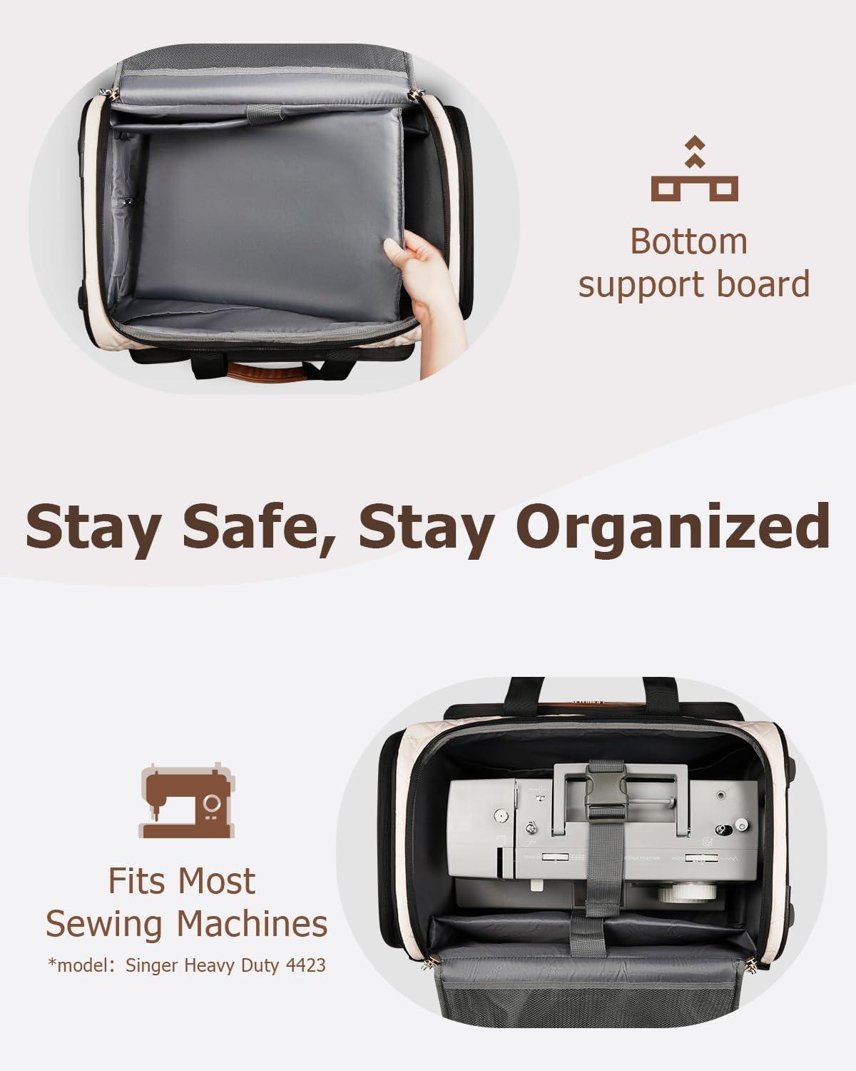 Enhanced Sewing Machine Protection: This rolling sewing machine case with thickened nylon fabric and a built-in securing strap holds the sew machine firmly in place. The bottom includes a hard, removable support pad for added stability. No assembly required! —simply unpack and use immediately. Keep your sewing machine safe wherever you go