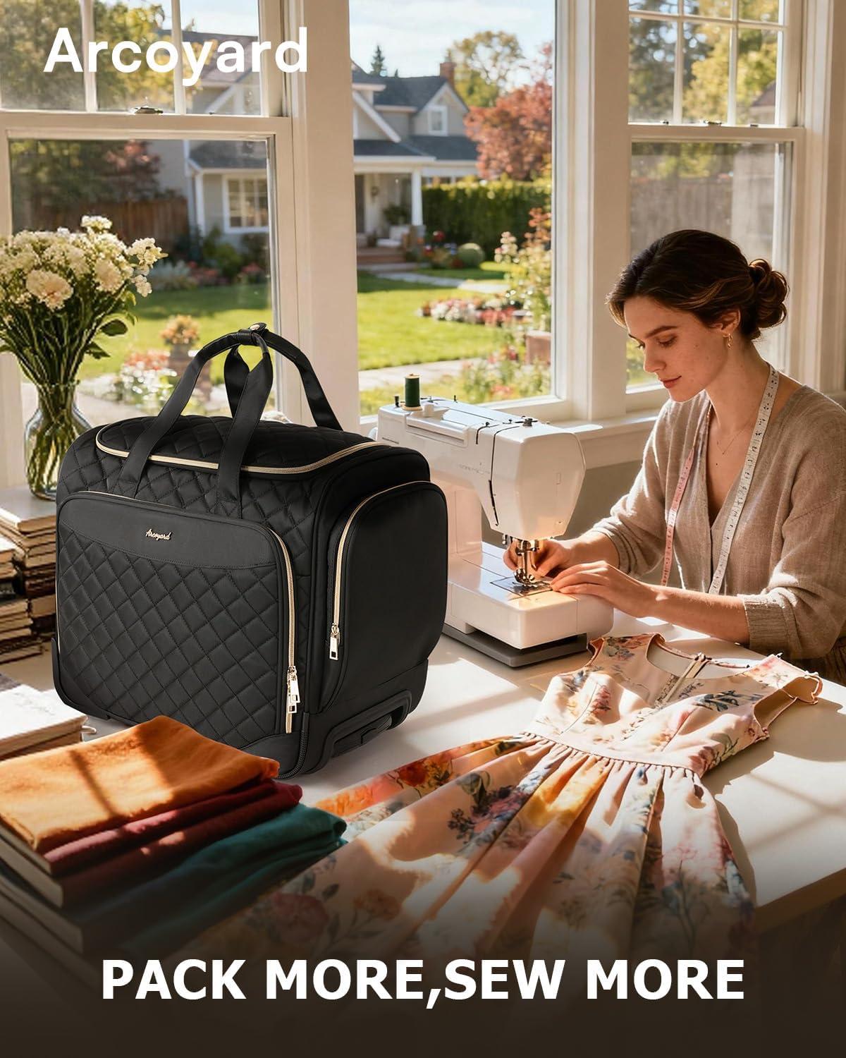 Enhanced Sewing Machine Protection: This rolling sewing machine case with thickened nylon fabric and a built-in securing strap holds the sew machine firmly in place. The bottom includes a hard, removable support pad for added stability. No assembly required! —simply unpack and use immediately. Keep your sewing machine safe wherever you go