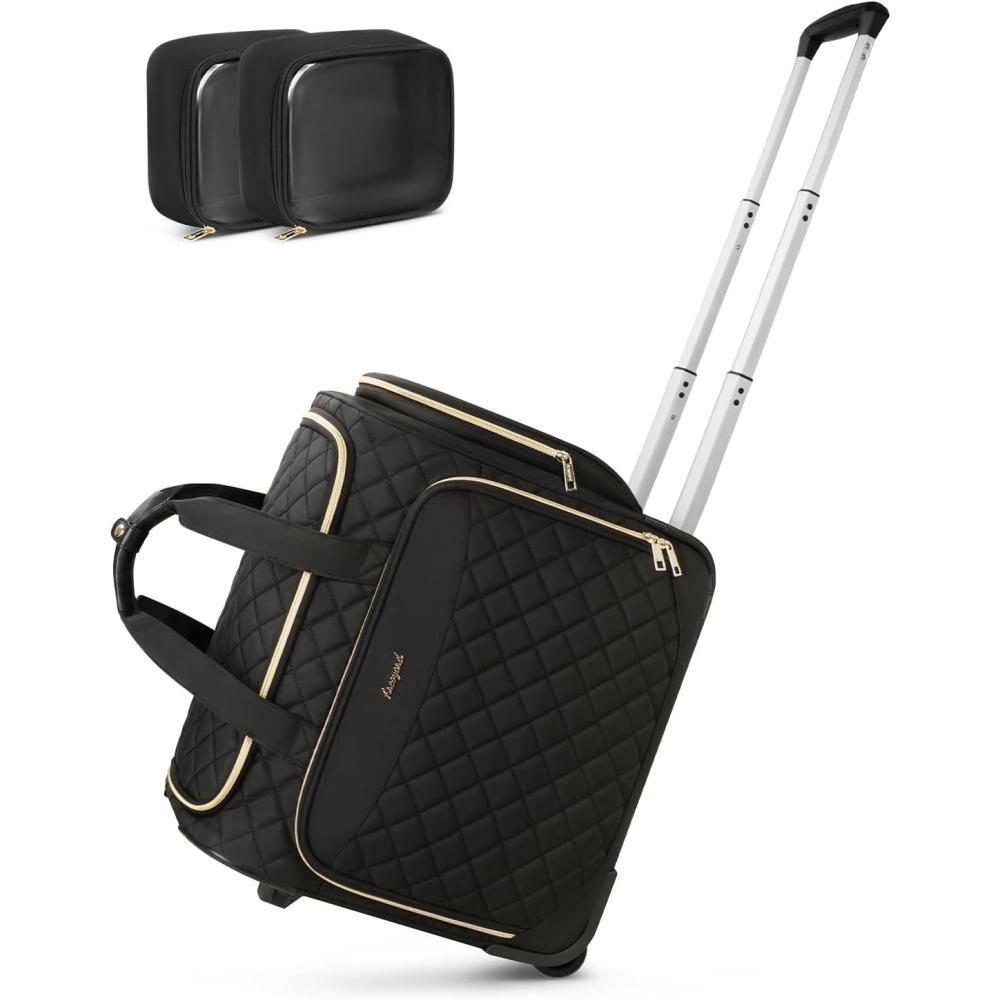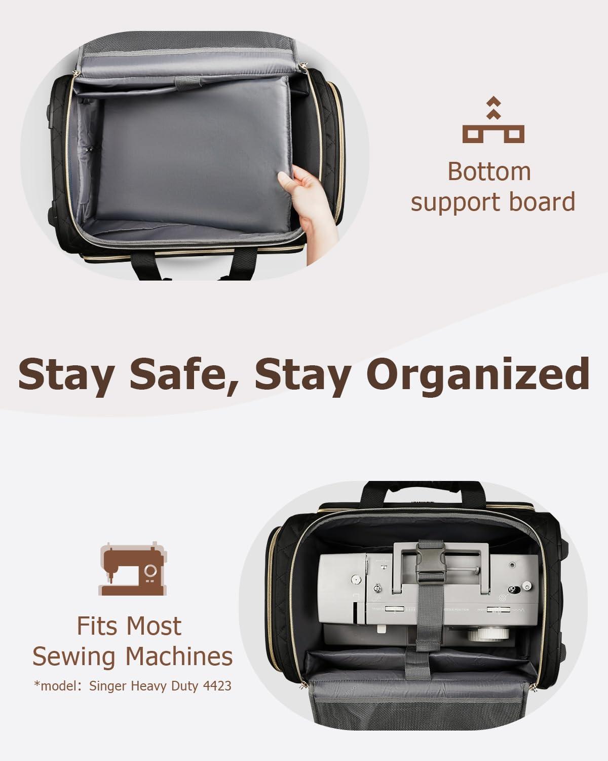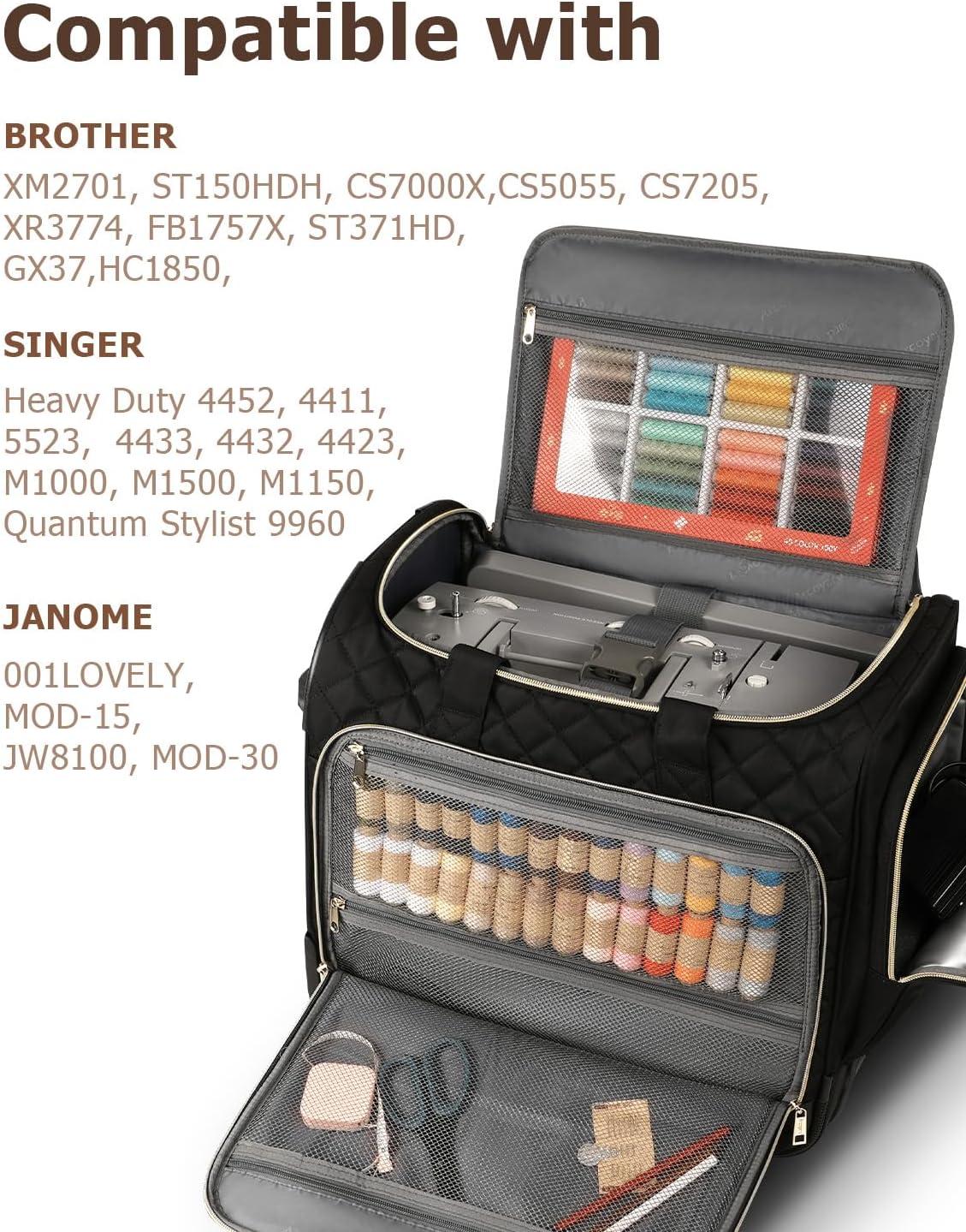 imageSewing Machine Case with Wheels Rolling Integrated Sewing Machine Carrying Tote Bag with Removable Bottom Board ampamp Multiple Storage Pockets Compatible with Singer Brother Janome BrownBlack