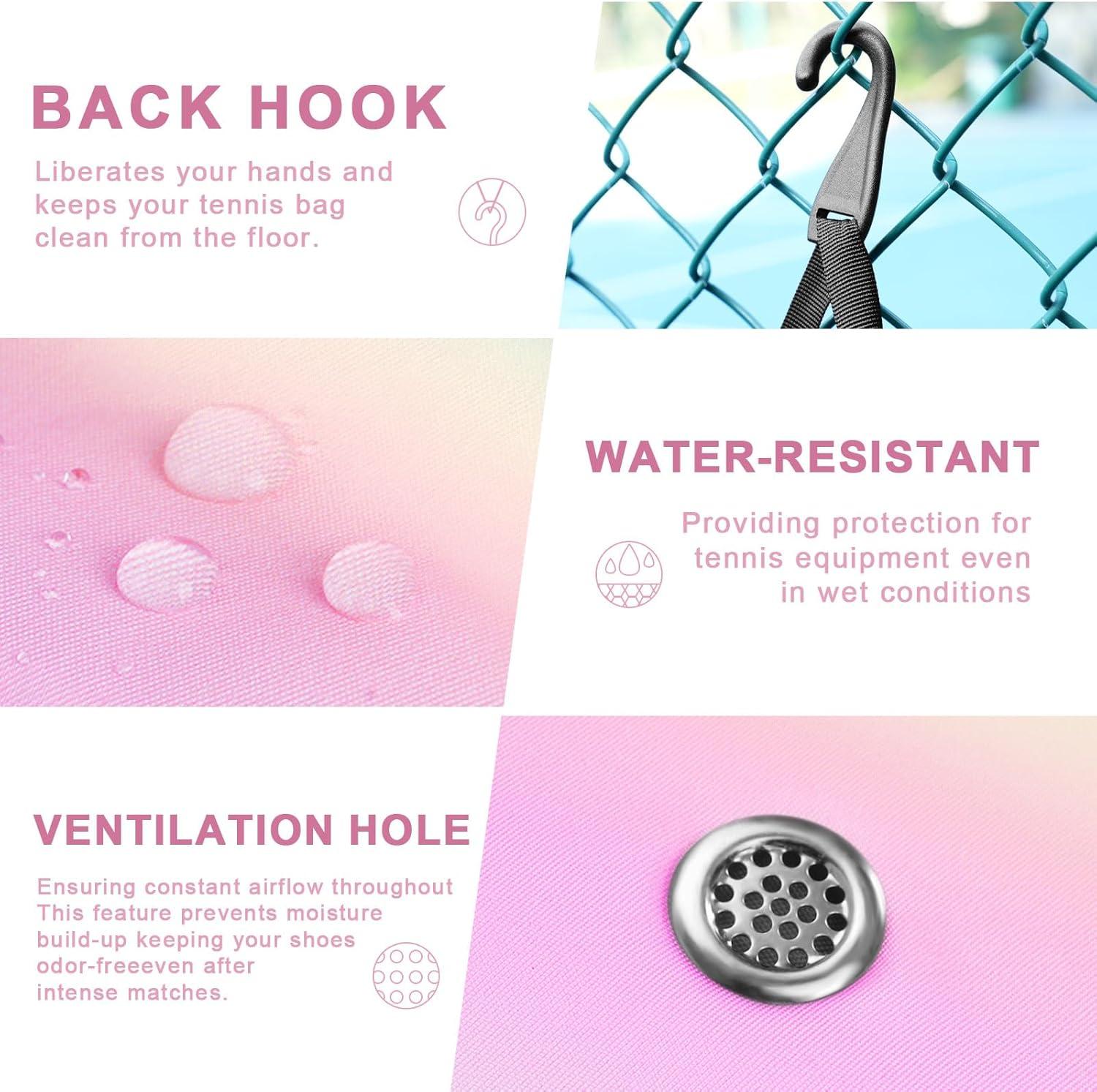 Considerate Backpack Design: The backpack's back aligns with the body's contours, distributing shoulder stress evenly. With two adjustable shoulder straps catering to different heights, the tennis backpack for women features neat stitching and reinforced areas in load-bearing regions, ensuring both comfort and durability. Ventilation structures on areas in contact with the body reduce back moisture, keeping you refreshed during activities