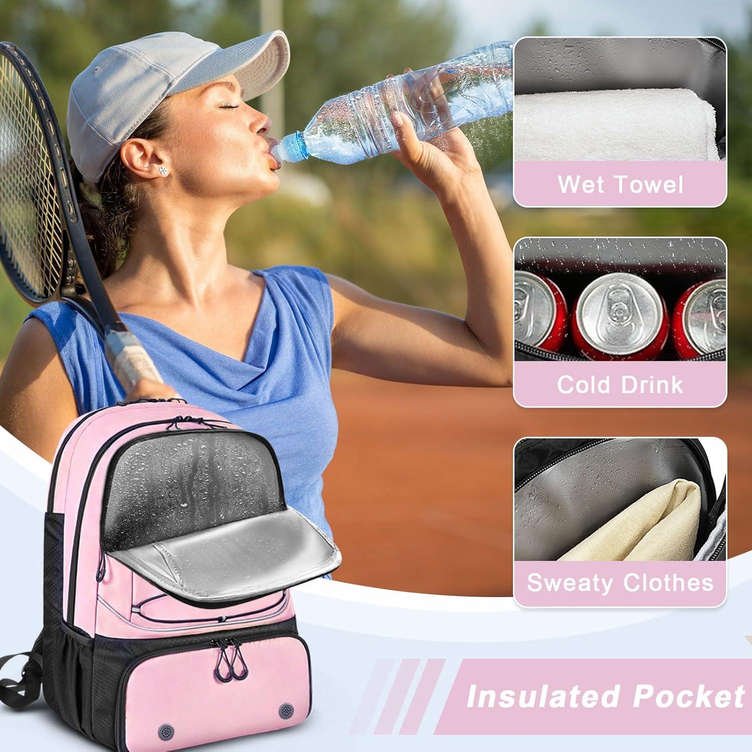 Tennis Bag Holds 2 Rackets, Professional Tennis Bags for Women, Tennis Backpack with Ventilated Shoe Compartment(Pink)