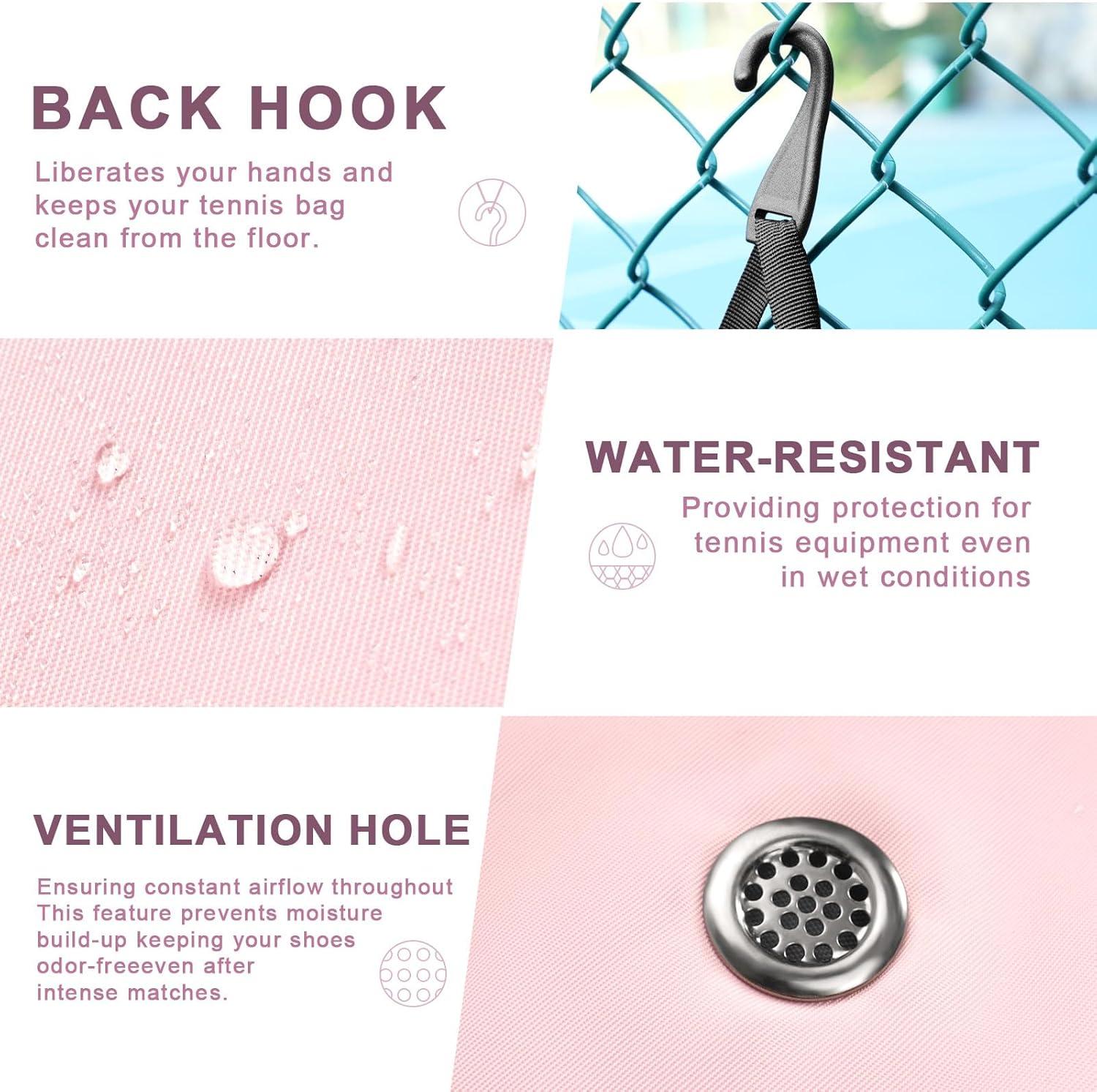 Considerate Backpack Design: The backpack's back aligns with the body's contours, distributing shoulder stress evenly. With two adjustable shoulder straps catering to different heights, the tennis backpack for women features neat stitching and reinforced areas in load-bearing regions, ensuring both comfort and durability. Ventilation structures on areas in contact with the body reduce back moisture, keeping you refreshed during activities