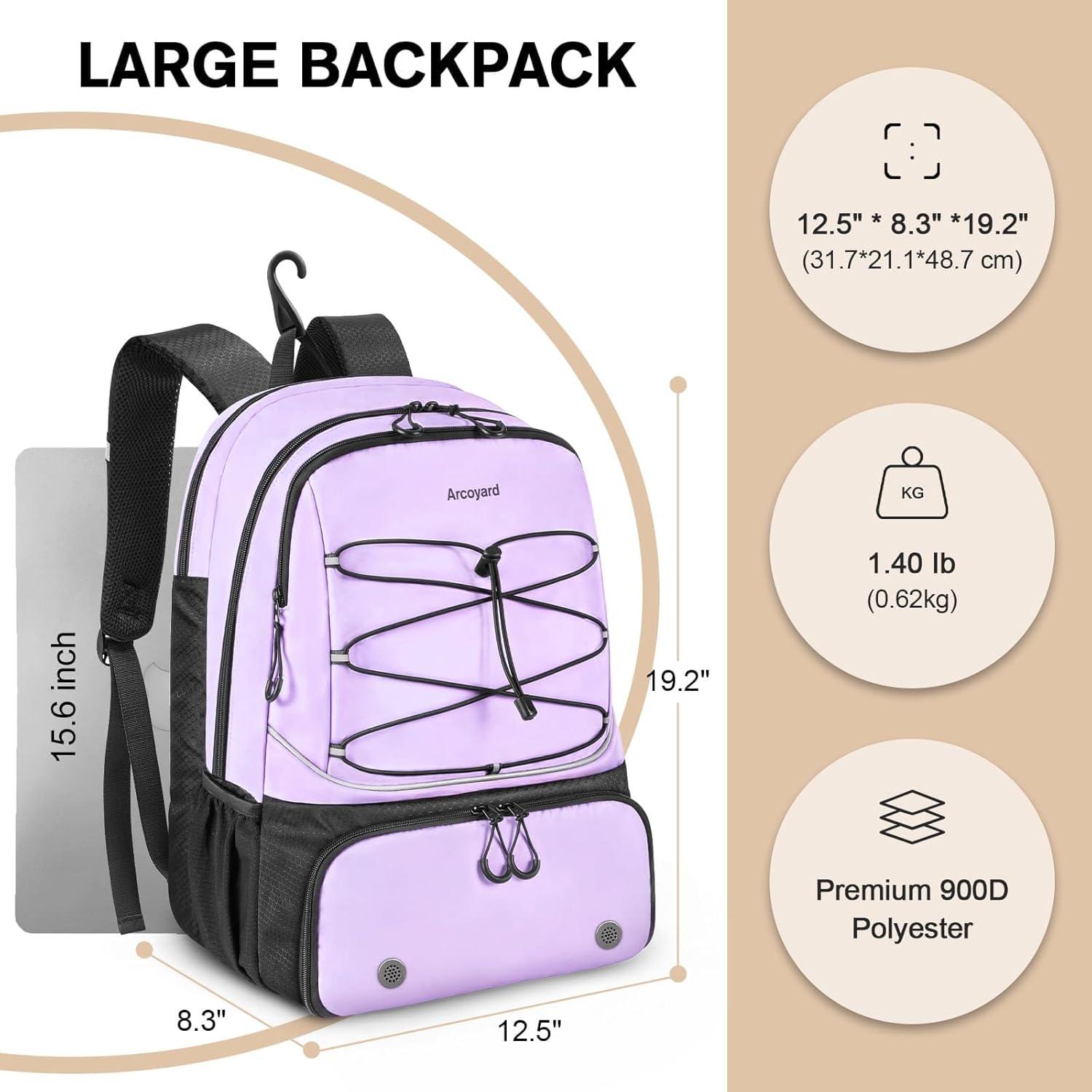 Large Tennis Bag: The racquet compartment features a soft cushion in the middle, capable of holding two tennis or pickleball racquets. It accommodates a 15.6-inch laptop effortlessly, The compartment is designed to limit racquet movement by anti-slip dual zippers, while the main section stores sports attire, tennis balls, towels, and other gear. Inside, specialized pockets secure tablets, phones, cables, and wristbands, eliminating the hassle of searching inside the tennis backpack