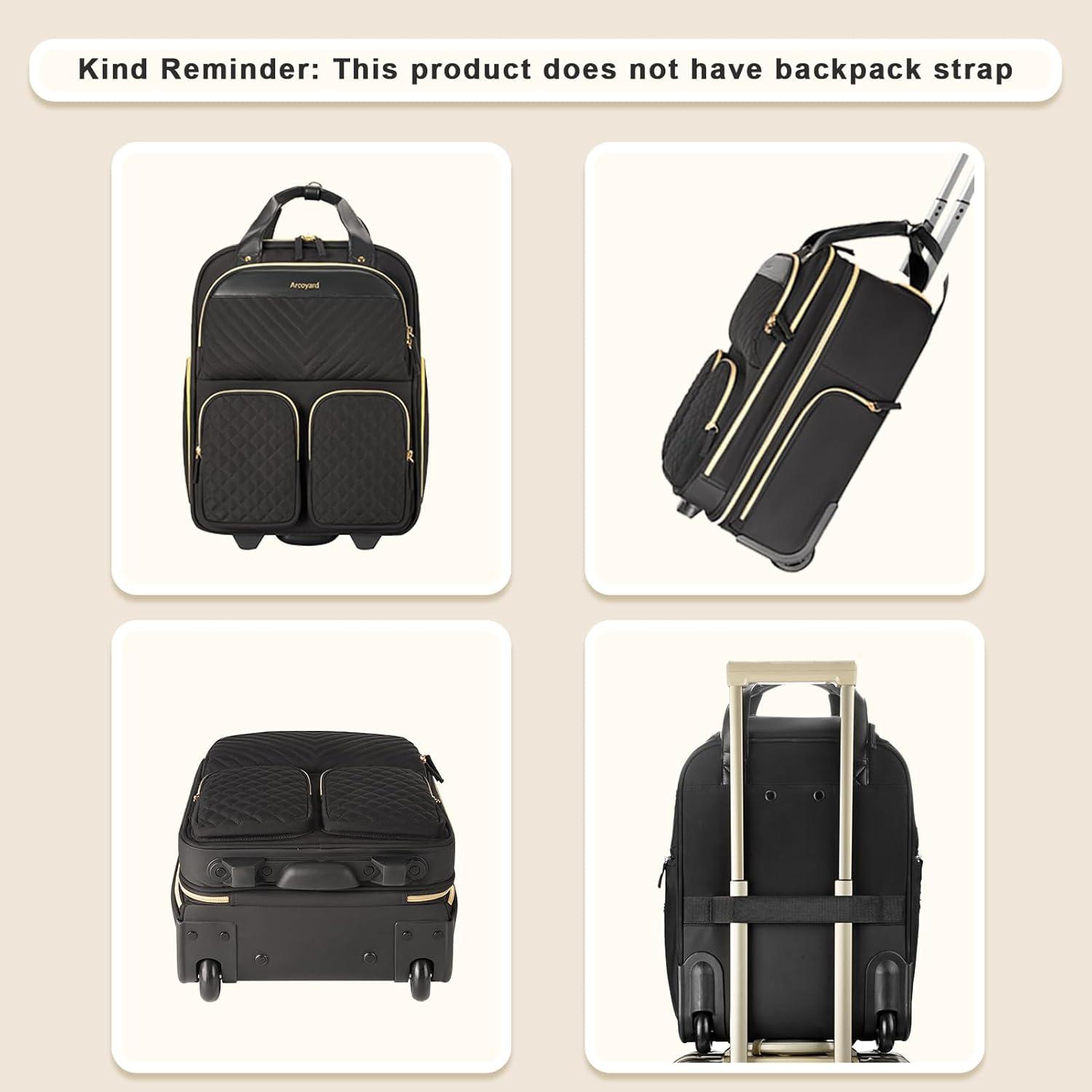 Under seat Carry On Luggage with Wheels, Multiple Compartments Airline Approved Personal Item Bag, Travel Carry-On with Leather Handle, Lightweight Rolling Suitcase for Women, Beige Brown(Black)