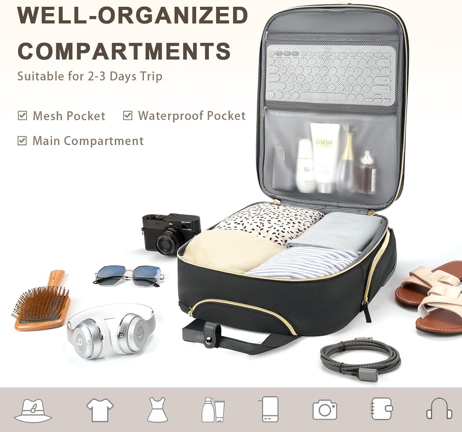 Be the first to review “Under seat Carry On Luggage with Wheels, Multiple Compartments Airline Approved Personal Item Bag, Travel Carry-On with Leather Handle, Lightweight Rolling Suitcase for Women, Beige Brown(Black)”