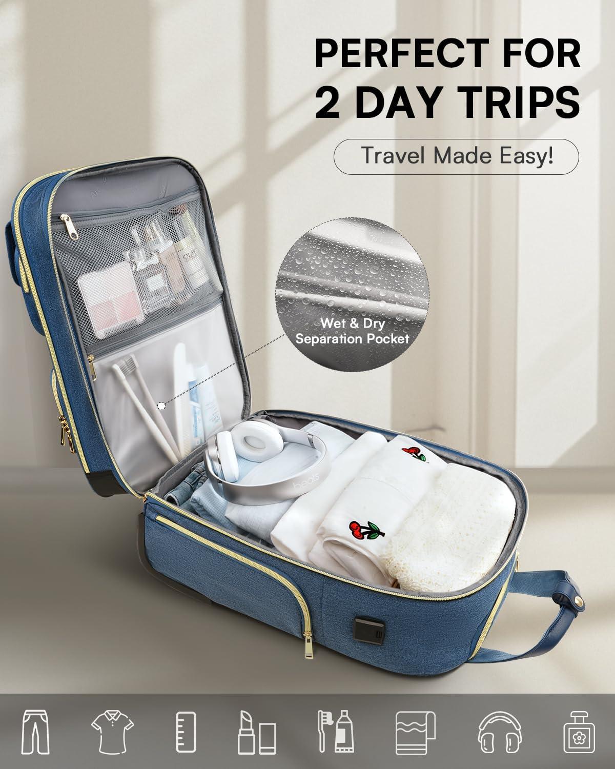 SPECIAL DESIGN POCKET: This personal item suitcase is equipped with six compartments for storage your personal items. Under the seat carry on luggage's padded foam in the front compartment to protect the laptop, waterproof pocket in the main compartment to separate the dry and wet, elastic belt in the main compartment to secure your item don't wiggle around. (Maximum storage size of laptop:16 inches)