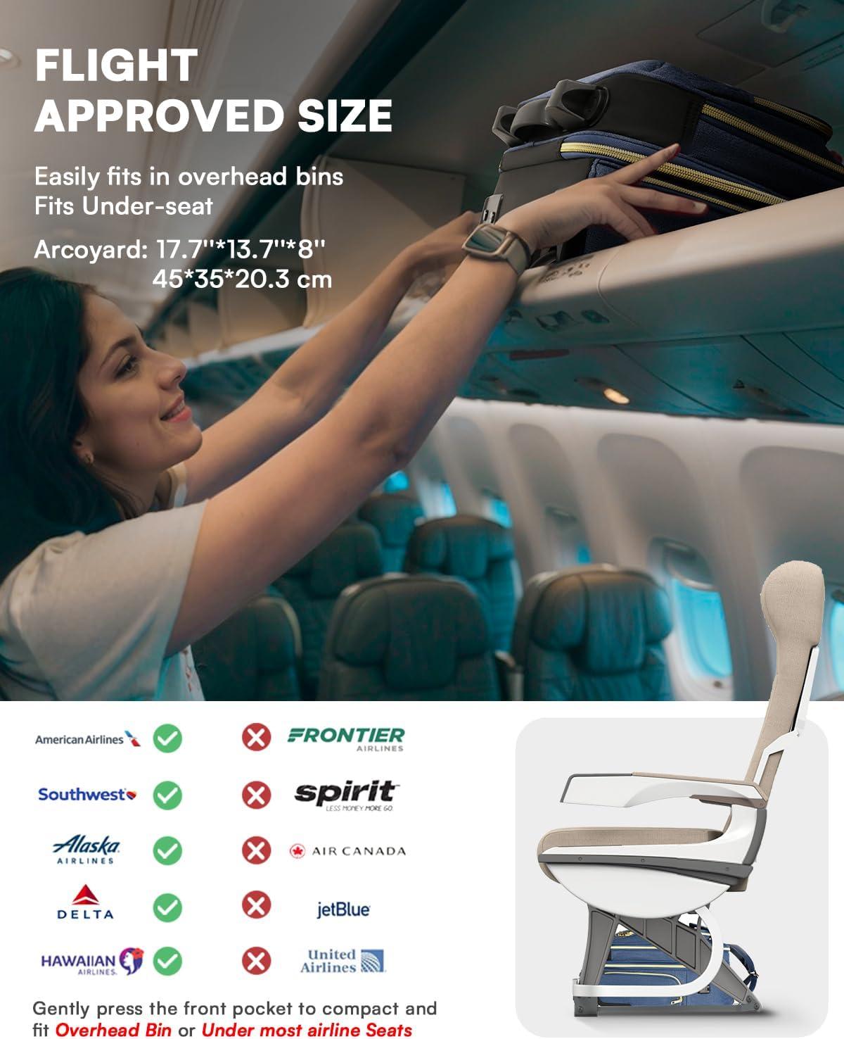 TSA APPROVED: ACROYARD Underseat carry on luggage with wheels is design to meets most airline's personal item sizes. Underseat carry on luggage's 17*13*7 inches dimension and 5lb weight fits in most airline's underseat size and overhead compartment. TSA approved carry on luggage could bring you a relaxing and comfortable trip.
