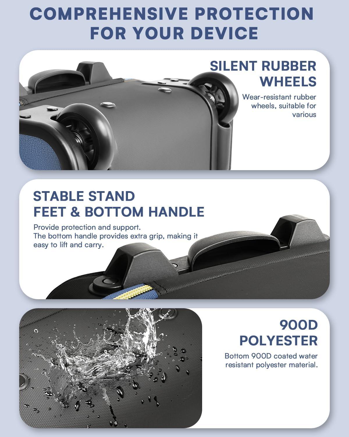 EXCELLENT DURABLE COMPONENTS: Under the seat carry on luggage equipped with an ergonomic carrying rod which in the hidden pocket. Underseat carry on's zipper head on the main and front pocket with locking hole provides security for your personal belongings. Rolling underseat carry on bag features skin-friendly leather carry handles which has a good amount of grip.