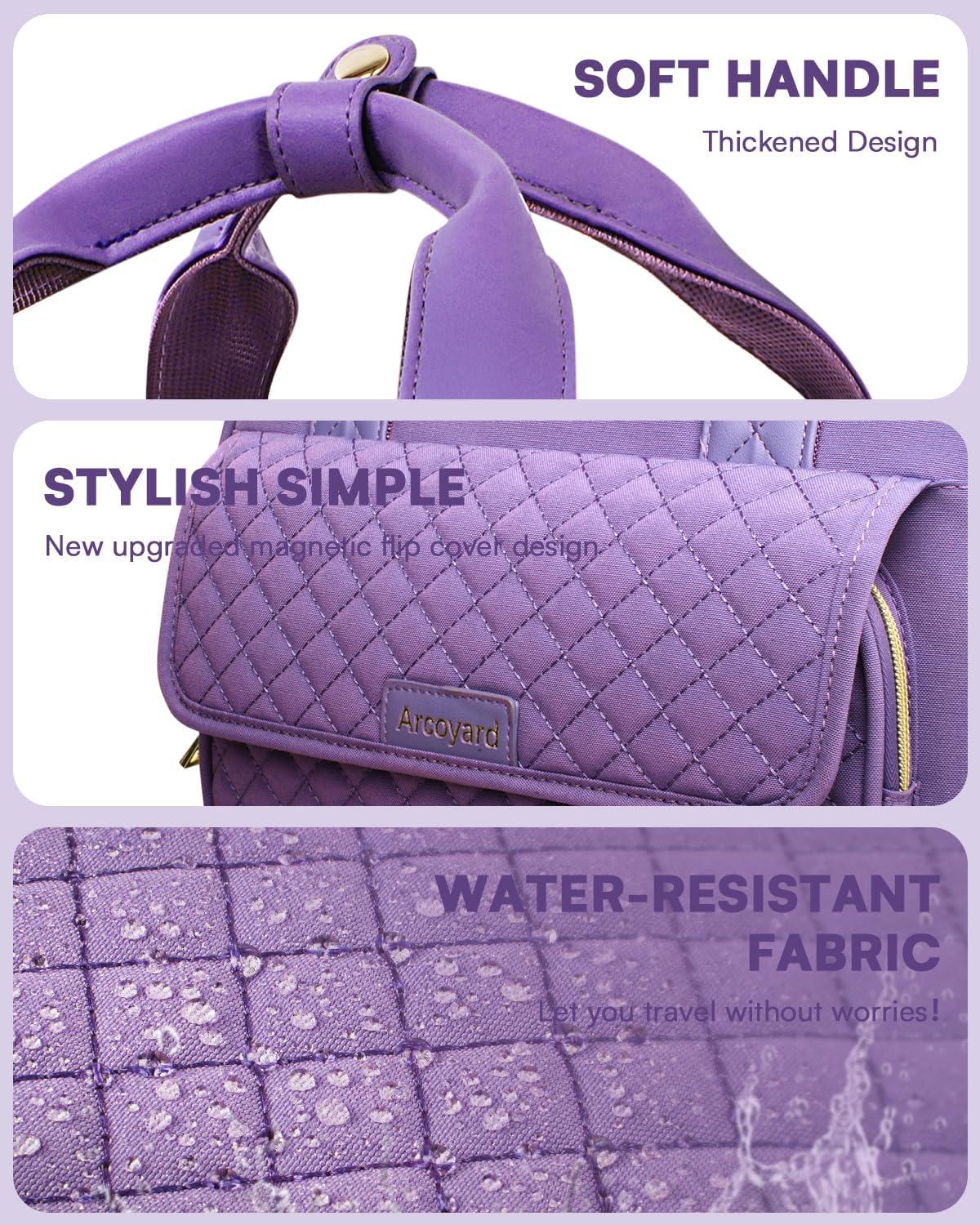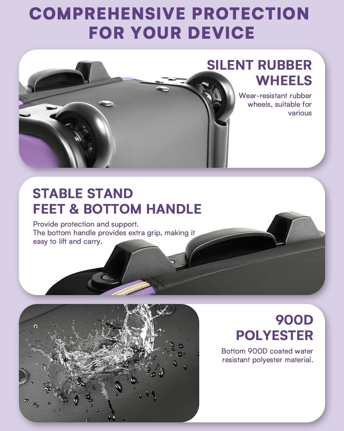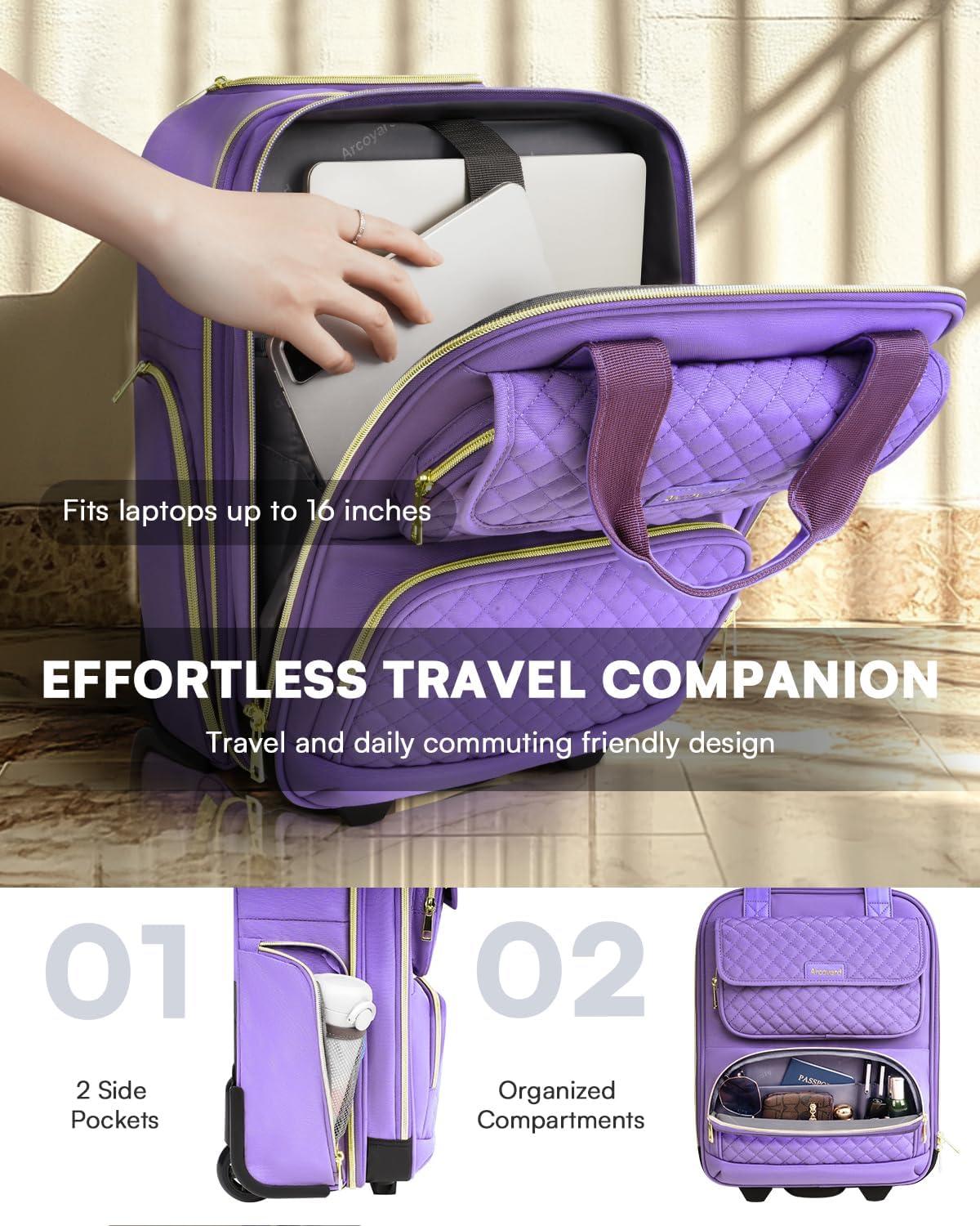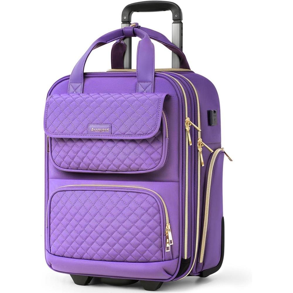 Underseat Carry On Luggage with Wheels, Airline Approved Personal Item Bag, 17-Inch Multi-functional Rolling Bag, Lightweight Overnight Suitcase for Women, Bussiness, Travel, Black(Purple)