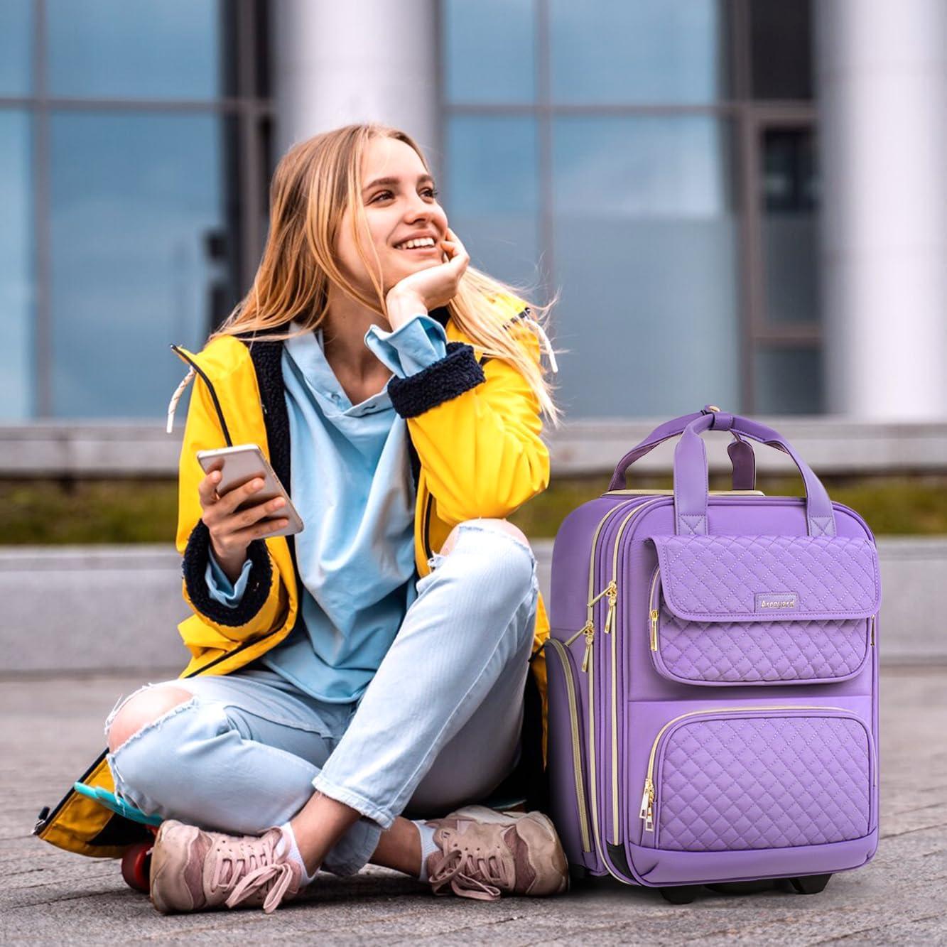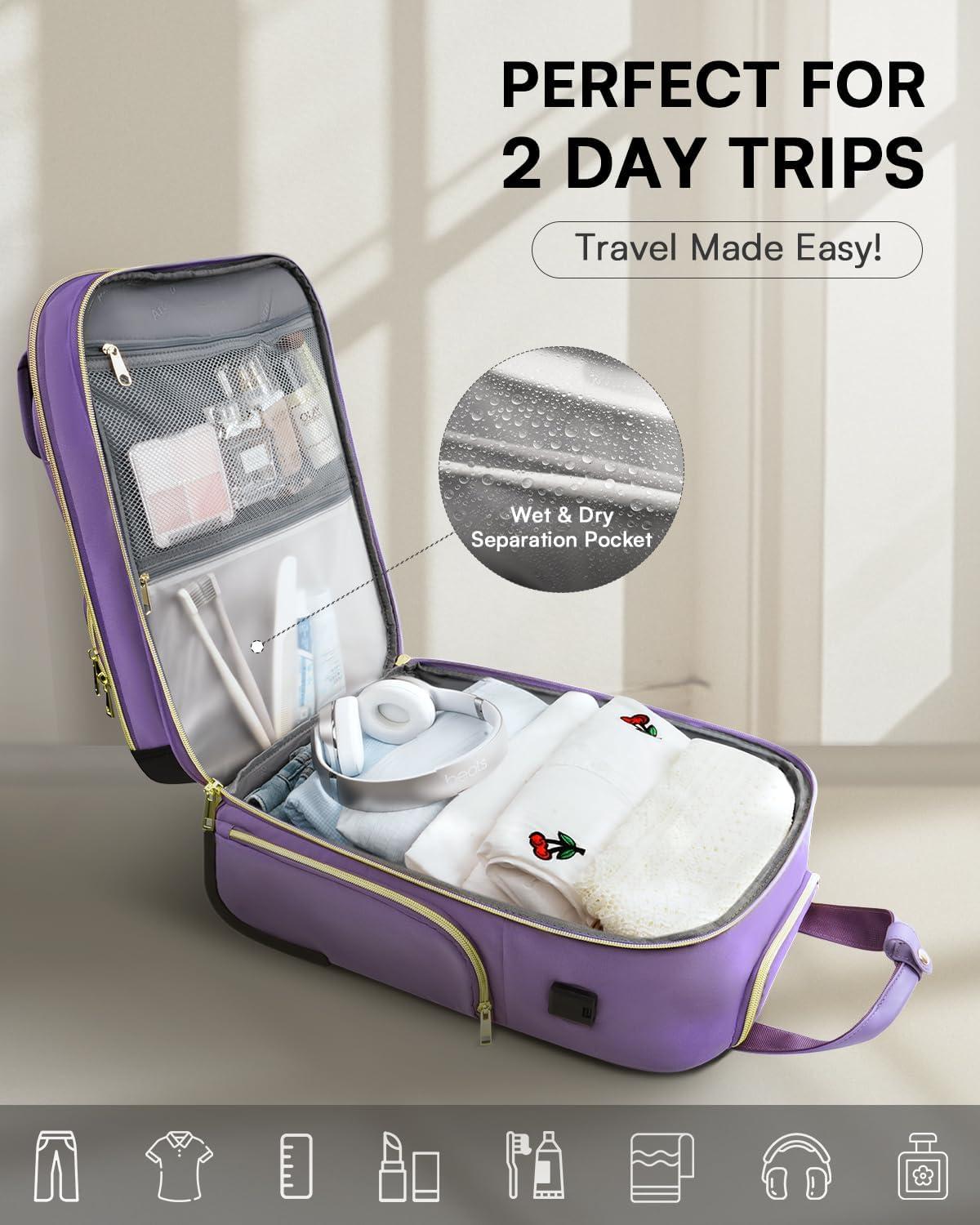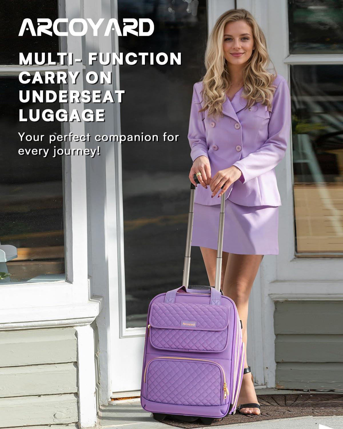 imageUnderseat Carry On Luggage with Wheels Airline Approved Personal Item Bag 17Inch Multifunctional Rolling Bag Lightweight Overnight Suitcase for Women Bussiness Travel BlackPurple