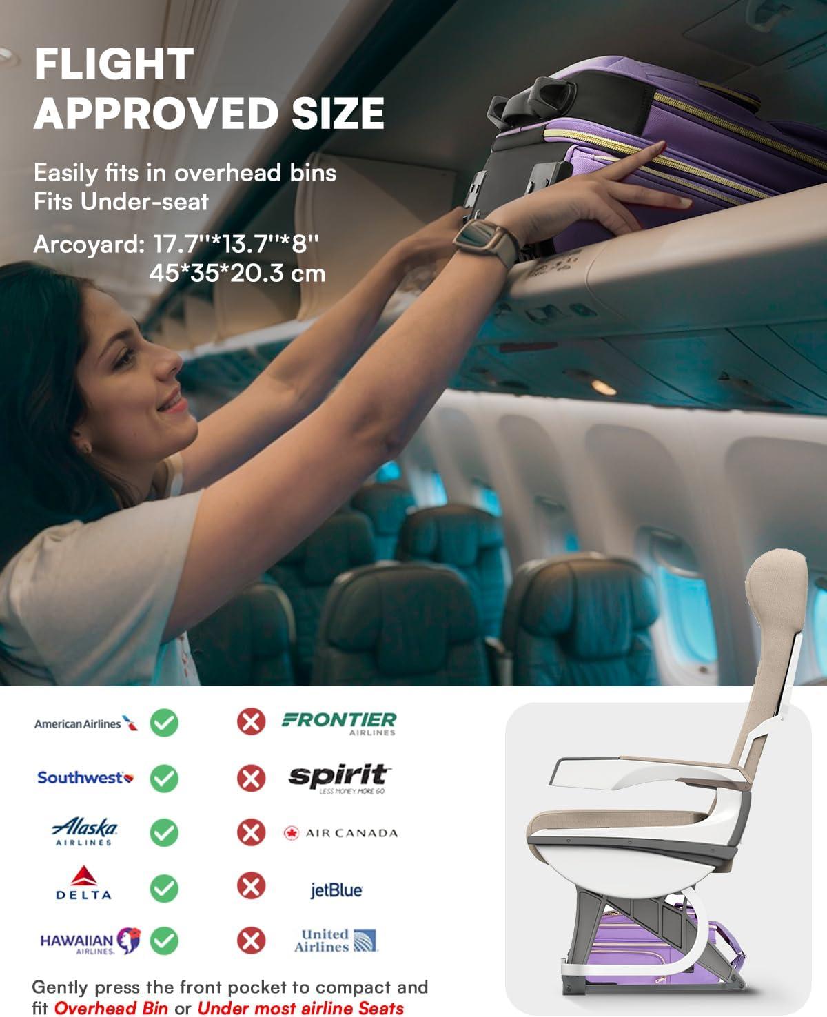 TSA APPROVED: ACROYARD Underseat carry on luggage with wheels is design to meets most airline's personal item sizes. Underseat carry on luggage's 17*13*7 inches dimension and 5lb weight fits in most airline's underseat size and overhead compartment. TSA approved carry on luggage could bring you a relaxing and comfortable trip.