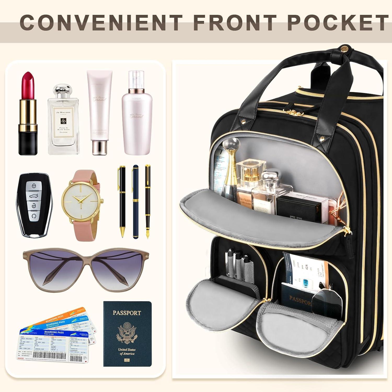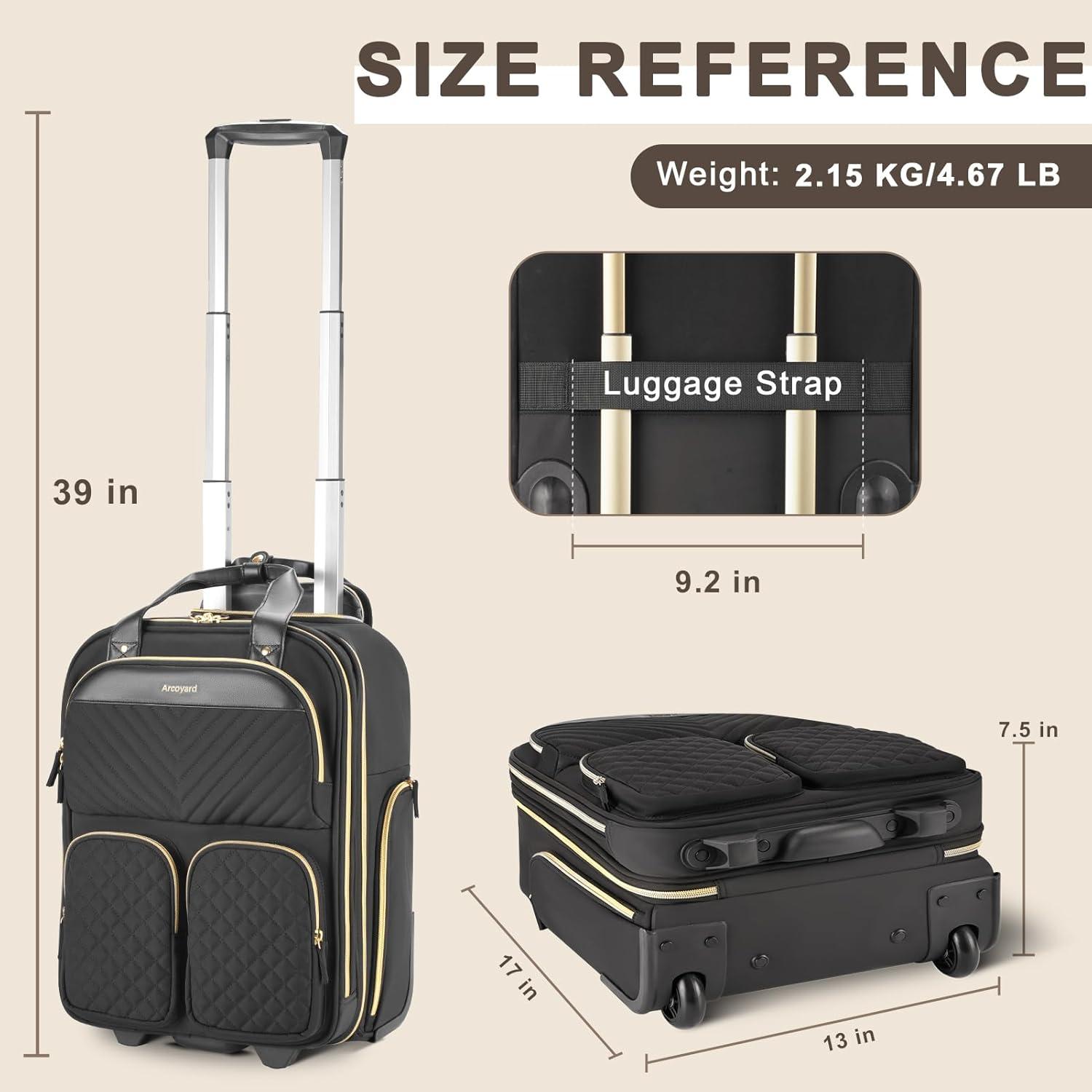 Be the first to review “Underseat Carry On Luggage with Wheels, Multiple Compartments Airline Approved Personal Item Bag, Travel Carry-On with Leather Handle, Lightweight Rolling Suitcase for Women, Black Gold, L(Black)”