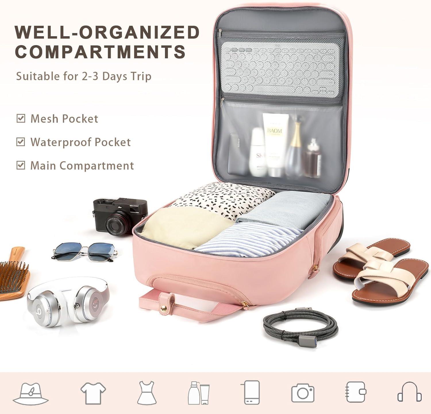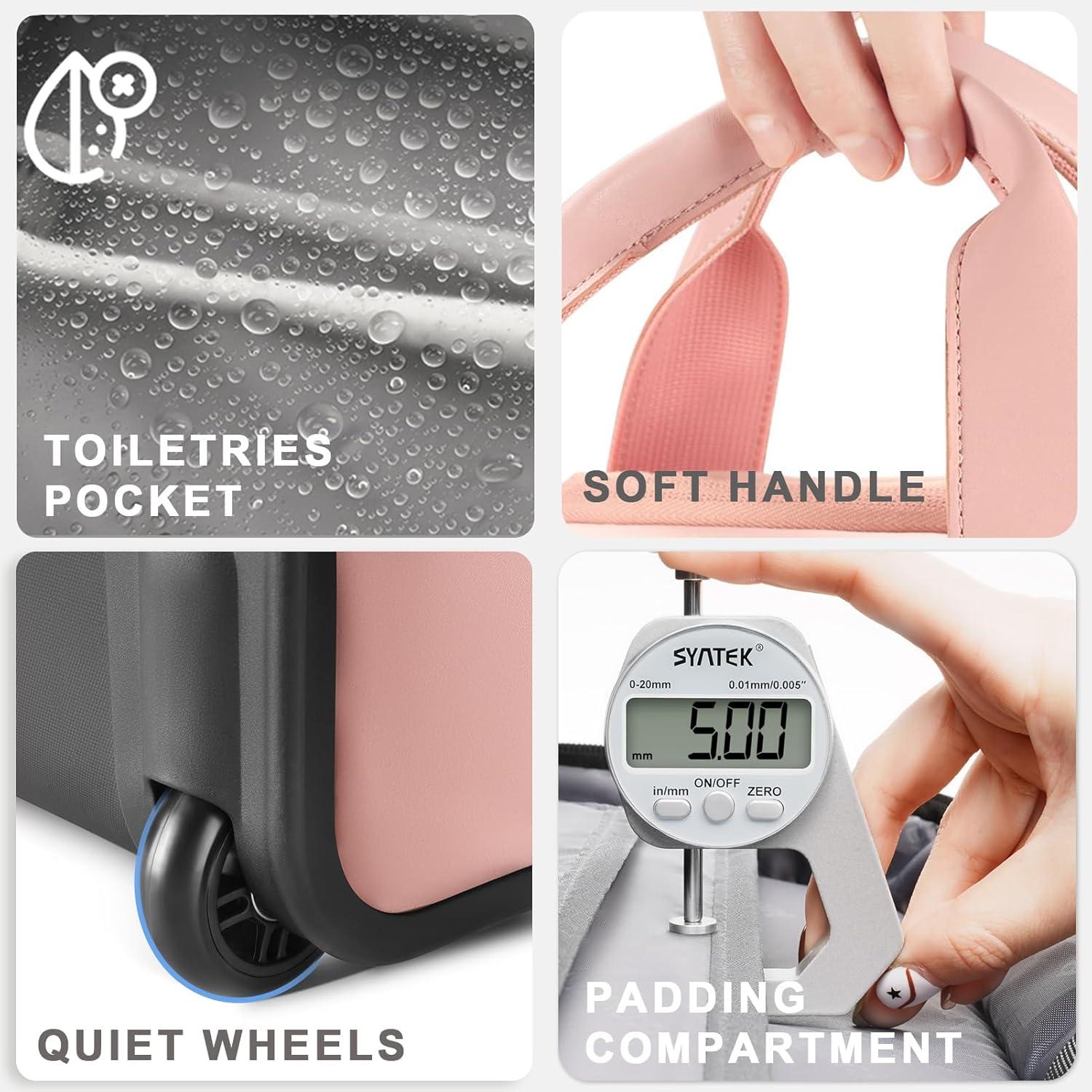 TSA-Friendly 180° Opening & Smooth Mobility: Lay-flat 180° design makes TSA checks a breeze. Thanks to the smooth wheels, it effortlessly passes through the airport with a full underseat carry on luggage. Additionally, the luggage strap at the back allow the small carry on luggage with wheels to be secured to larger suitcases