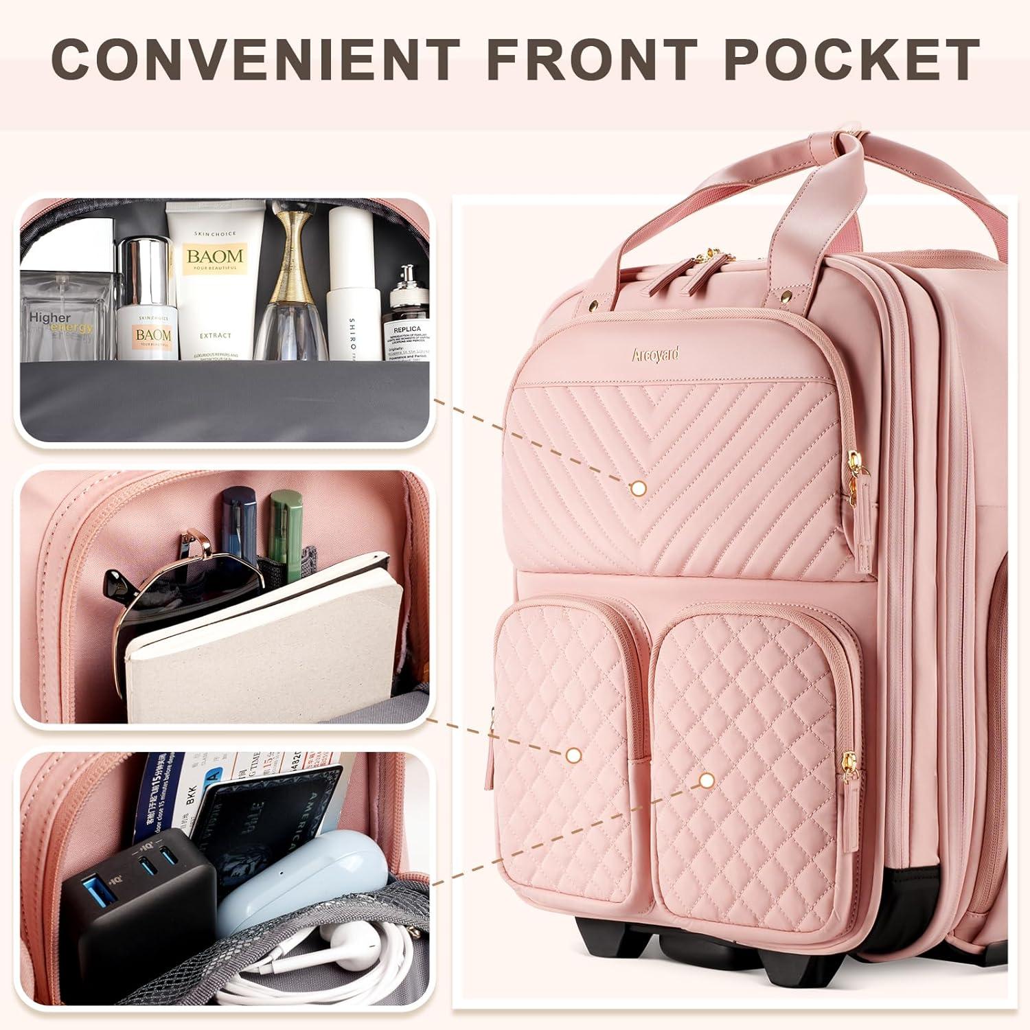 Sturdy and Ergonomic: Featuring an all-aluminum trolley handle for easy pulling, this underseat rolling bag is ergonomically designed for the comfort of frequent travelers. The soft handle relieves hand fatigue, ensuring a comfortable grip throughout your journey