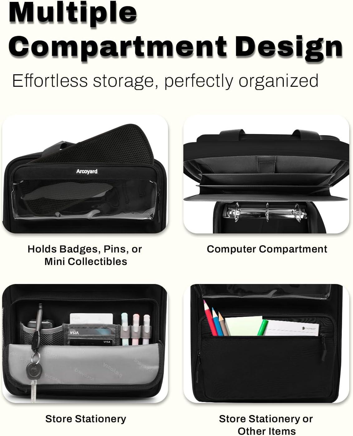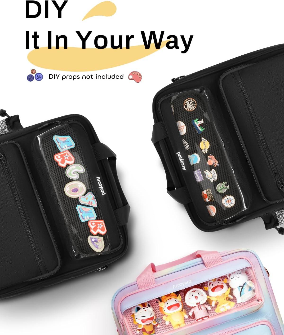 【Creative DIY Front Compartment – Show Off Your Style】 Unlike regular zipper binders, the Arcoyard 3 ring zipper binder features a transparent, customizable front pocket—perfect for showcasing your favorite pins, charms, toys, or photos. At the same time, it is designed as both a crossbody ita bags and an ita bag backpack, letting you express your personality while staying organized in the classroom or on the go. Make organizing fun, functional, and uniquely yours.