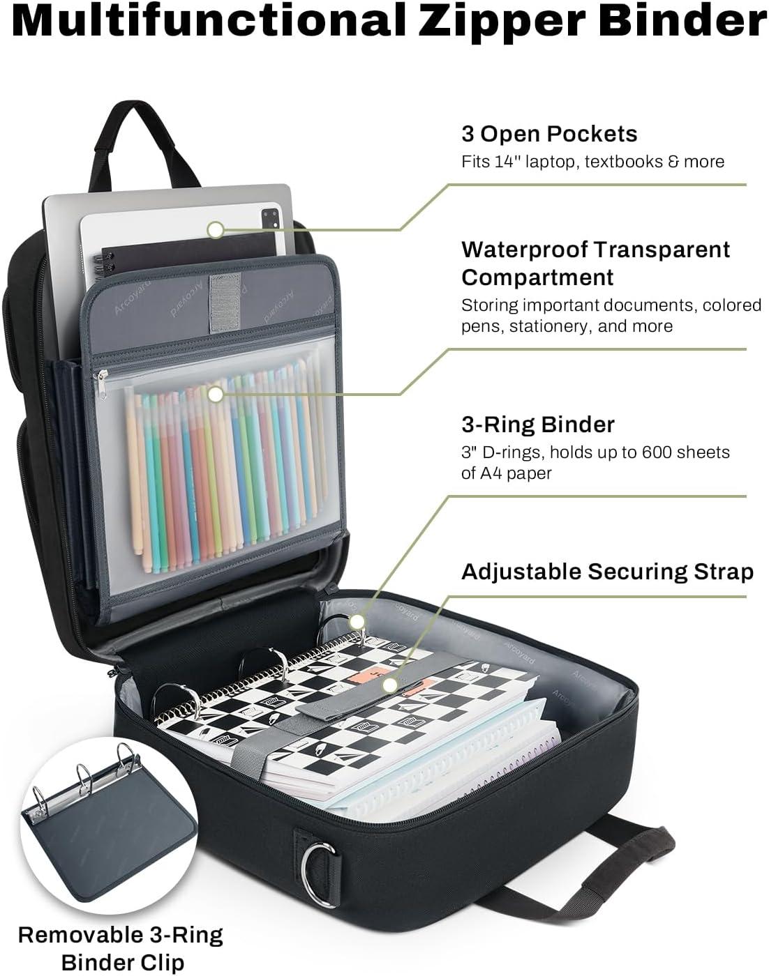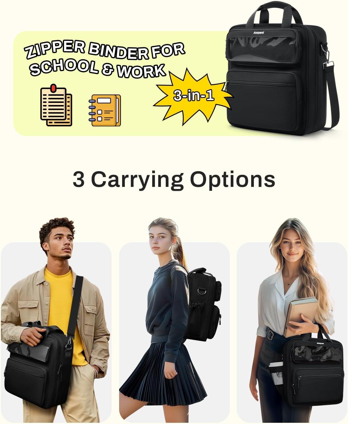 【3-in-1 Carrying Options – Versatile & Comfortable】 Equipped with a detachable shoulder strap, this zipper binder with shoulder strap offers three flexible carrying options: wear it crossbody, carry it as a backpack, or use it as a tote. Whether you're heading to school, work, or travel, this binder bag adapts to your needs with ease.